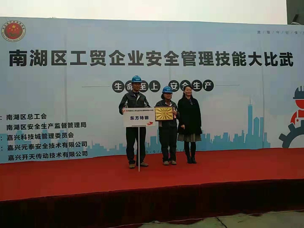 為提高企業(yè)安全生產(chǎn)管理水平,進(jìn)一步強(qiáng)化企業(yè)職工安全素質(zhì),推動(dòng)企業(yè)落實(shí)安全生產(chǎn)主體責(zé)任,由南湖總工會(huì)辦公室主辦的“生命至上,安全生產(chǎn)”南湖區(qū)工貿(mào)企業(yè)安全管理技能大比武于2018年11月21日在嘉興開天傳動(dòng)技術(shù)有限公司隆重召開。參賽人員包括區(qū)總工會(huì)、區(qū)安監(jiān)局負(fù)責(zé)人及科室責(zé)任人,各(街道、園區(qū))總工會(huì)、安監(jiān)隊(duì)相關(guān)負(fù)責(zé)人以及15支工貿(mào)企業(yè)參賽,其中振石集團(tuán)東方特鋼有限公司作為新豐鎮(zhèn)總工會(huì)代表前往參加此次大比武。